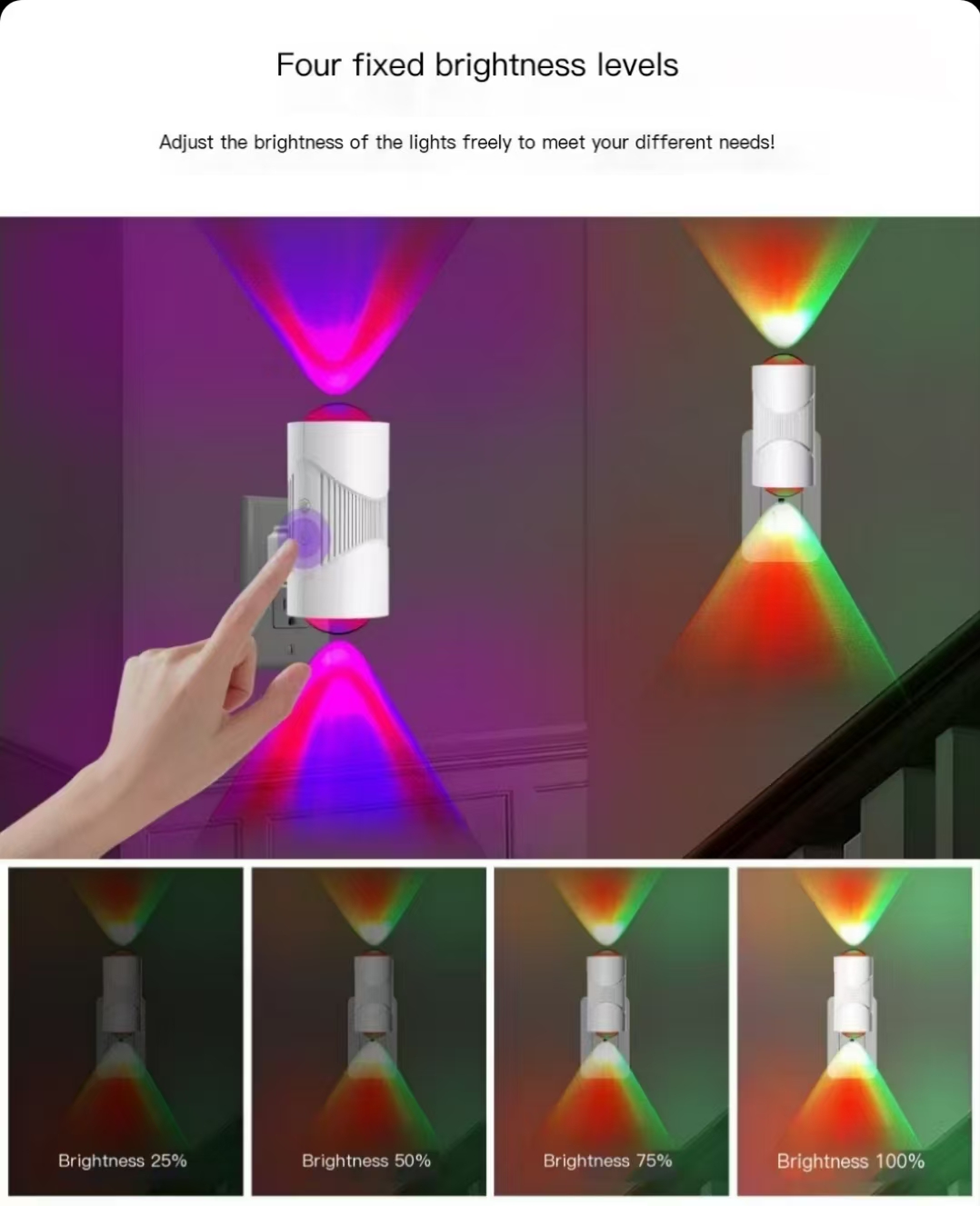 [Intelligent Induction Atmosphere Night Light] series! Product Highlights : 1. Magnetic design is installation-free, and can be rotated 360° to adjust different projection angles 2. Triple sensing: human body sensing, light control induction, motion sensing 3. Three modes: Constant Light/Off/Auto Sensing 4. The RGB model has colorful lighting effects to switch freely/the warm light model has three color temperature lighting effects to switch freely, and there are four levels of brightness that can be adjusted 5. Built-in 1500 mAh battery, long-lasting battery life Suitable for living room/bedroom/hallway/entryway, etc., to create a dreamy atmosphere for your living space.